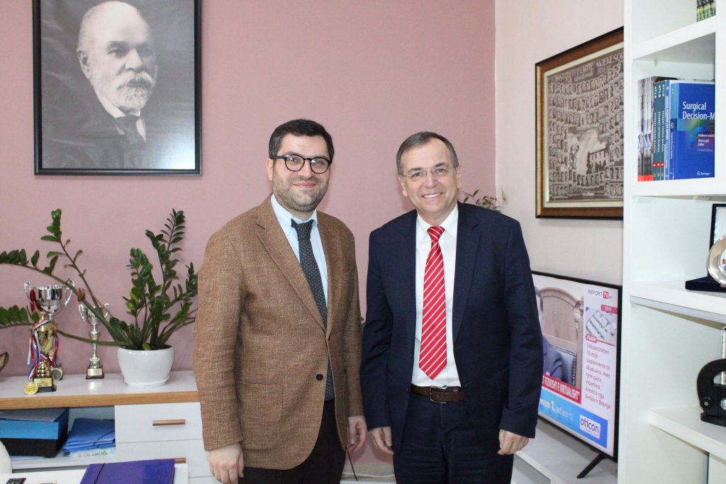 Rektori i Universitetit të Mjekësisë, Tiranë, Prof. Dr. Xheladin Draçini, zhvilloi një takim institucional me Prof. Dr. Gevorg Tamamyan, President i International Society of Pediatric Oncology Asia Continental Branch, me fokus ndërtimin e urave për bashkëpunim ndërinstitucional.